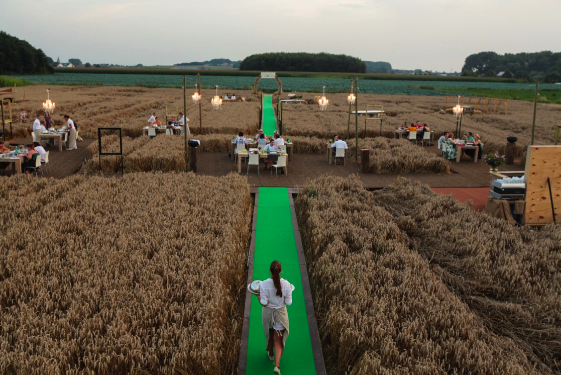 Keys of Experiential Marketing, unerwartete Szenarien für ein Pop-Up Event: Ein Weizenfeld. Wenn du an ein Pop-up Store, ein Pop-up Restaurant oder eine Pop-up Veranstaltung denkst, besteht die Tendenz darin, es mit einem physischen Standort wie einem Geschäft, einer Galerie oder einem Container zu verknüpfen. Aber was wäre, wenn die Natur die Kulisse für ein unvergessliches Pop-up Erlebnis wäre? Genau das muss sich Fast Forward Event, die Kreativagentur hinter dem Projekt, bei der Organisation dieser Veranstaltung gedacht haben. Für die auf italienische Produkte wie Pasta spezialisierte Marke Come a casa hatte das Kreativteam die Idee, ein Weizenfeld als Standort für ein Pop-up