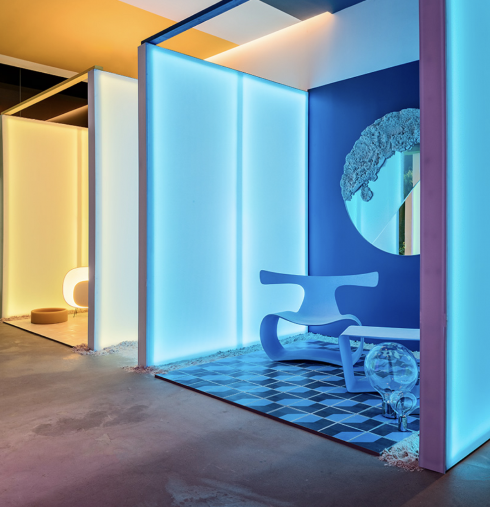Diversify your space by creating a minimal booth where the product is the protagonist. In crowded events, this approach is a gift for those visitors seeking a place to relax their senses. It is also a statement: your product is strong enough to stand on its own.