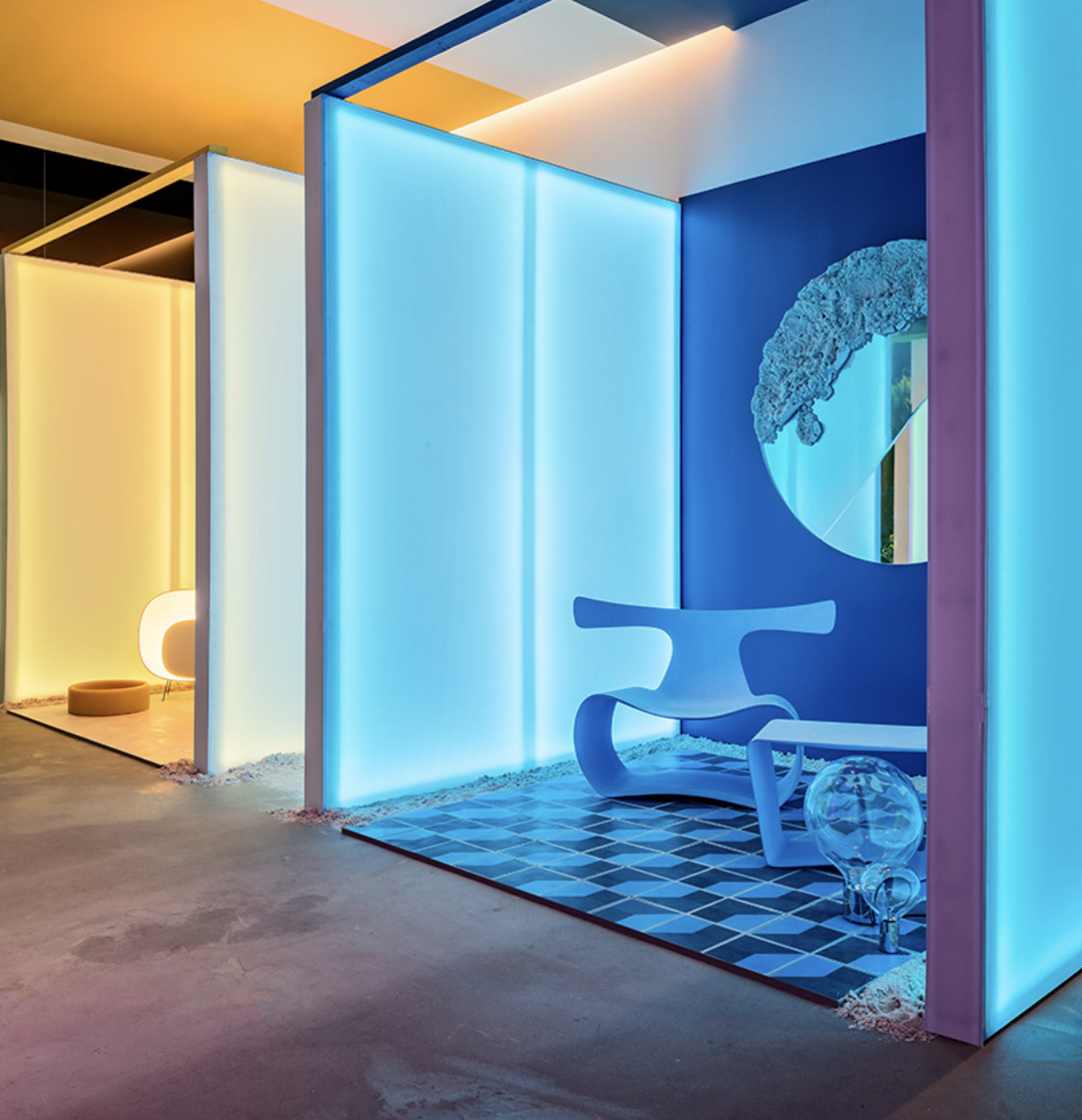 Diversify your space by creating a minimal booth where the product is the protagonist. In crowded events, this approach is a gift for those visitors seeking a place to relax their senses. It is also a statement: your product is strong enough to stand on its own.