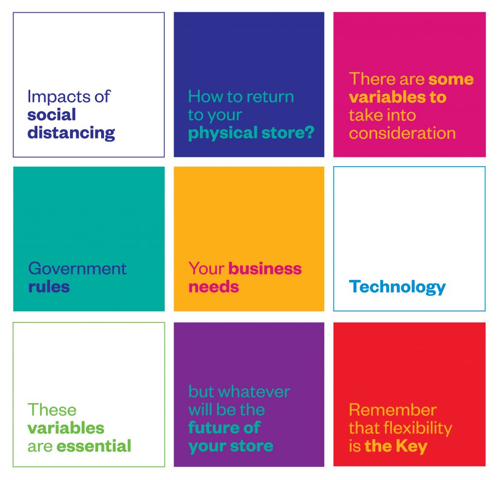 There are several variables that need to be taken into account when analysing how to return to your physical store? Some are independent of your will, some overlap and some are a consequence of each other. All of them connect, and in order to visualise your future physical space, these variables need to fit with each other, just like playing Tetris.