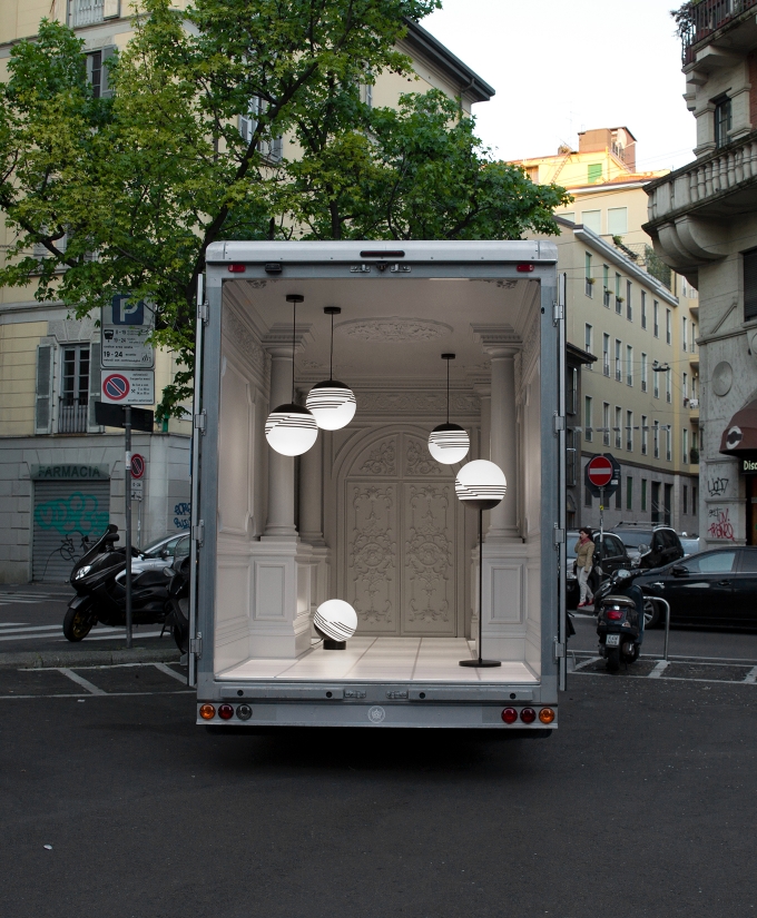 Es posible jugar con los interiores creando un contraste dramático con el exterior, Lee Broom utilizó toda su imaginación para ofrecer esta experiencia y creó un camión que se parecía a un antiguo Palazzo italiano.