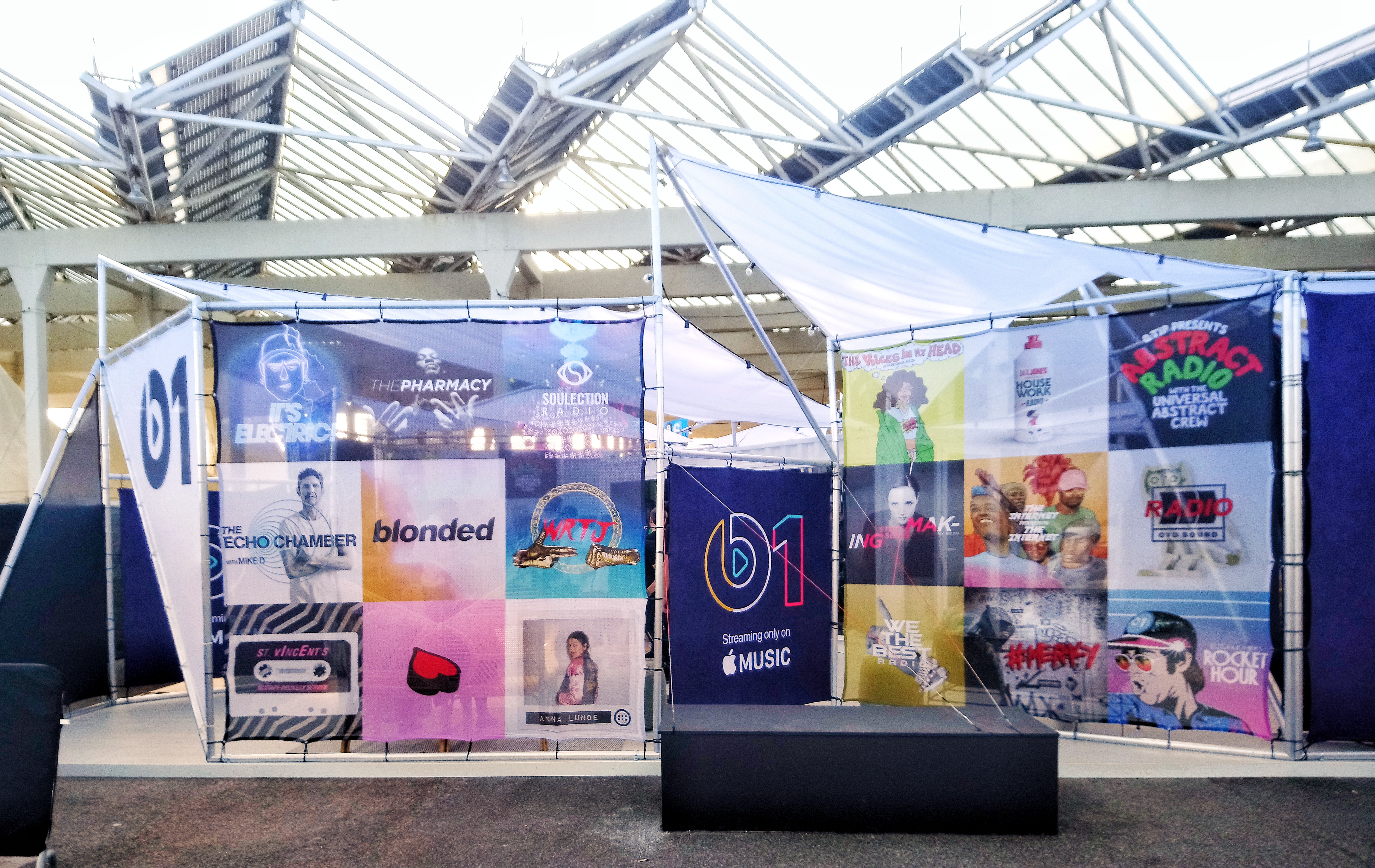 Patrocinado por Apple Music, la instalación ofrecía varios espacios para conversar, relajarse y realizar la grabación de las entrevistas, tanto para los solistas y grupos como para el equipo técnico de la productora y los promotores.