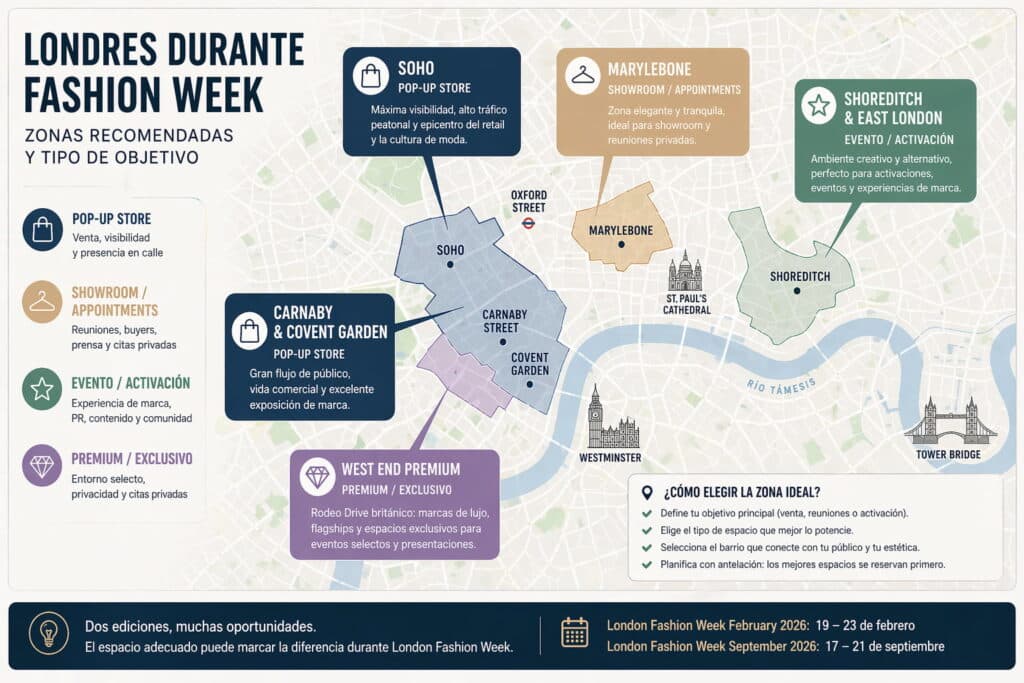 La siguiente decisión ya no es cuándo sucede London Fashion Week, sino qué tipo de espacio necesita tu marca para estar en Londres con sentido comercial.