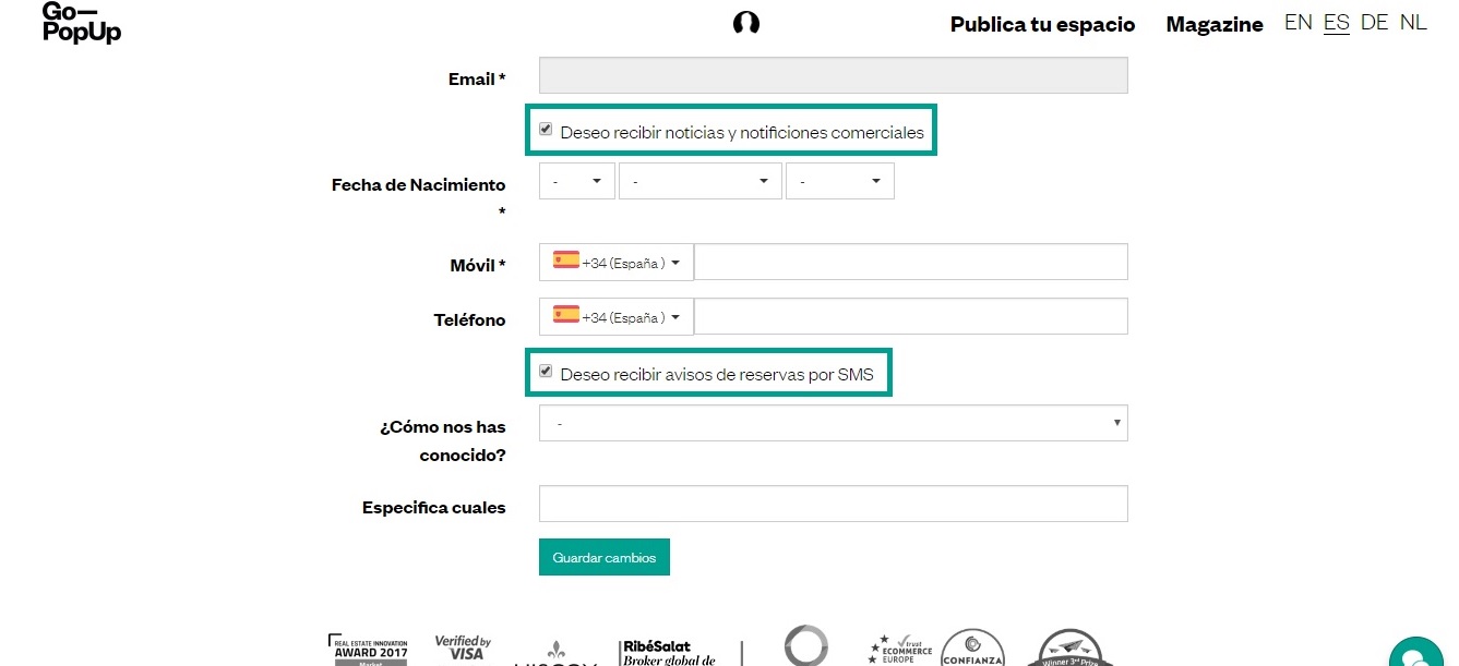 - Deseo recibir noticias y notificaciones comerciales