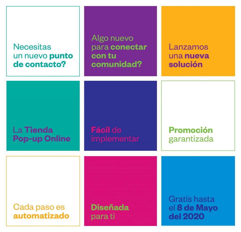 Los consumidores permanecen confinados en sus hogares, pero están dispuestos a interactuar con las marcas más que nunca, utilizando soluciones digitales alternativas. La última forma de conectarse con los clientes, a travéz de canales digitales, es una necesidad de los tiempos actuales. Sin embargo, muy pronto se convertirá en una parte integrada del enfoque omnicanal minorista para los consumidores. Online Pop-Up Store: nuestro último producto, es la respuestas para conectar con tus clientes y tu comunidad a través de un simple clic.