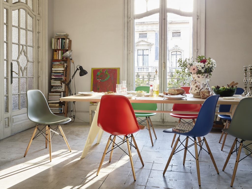 Durante un periodo de tres meses, los visitantes de la pop-up de Vitra podrán explorar la amplia gama de bases, colores de concha y versiones de tapicería disponibles para la silla Eames Plastic Chair. Combinando libremente las distintas opciones, pueden pedir su propio modelo personal.